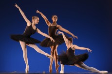 Image: UGA students Amanda Rostin of Cumming and Kalela Massey of Atlanta and alumna Kristin Grubbs of Greenville, S.C., rehearse a scene from the UGA Ballet Ensemble's 20th anniversary performance.