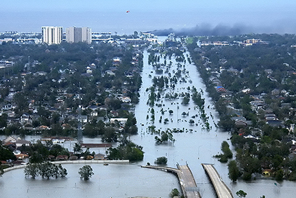 Image: Significant flooding in New Orleans as a result of Hurricane Katrina, via wikimedia commons