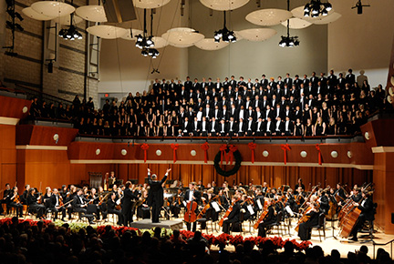 “We’ve invited Teresa Grynia, a violin Doctor of Musical Arts student, to sing with her jazz trio,” said Bara. “The British Brass Band, led by renowned trumpet faculty Phil Smith, is also a highlight.  And, of course the sound of the full symphony orchestra and more than 200 singers collaborating on two grand holiday medleys is always a thrill to hear and a sight to behold.”