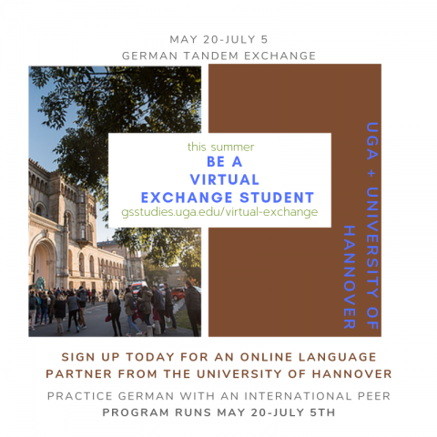 "This virtual exchange program is a great way for students to improve their German skills in a real-life setting without the commitment and costs that come with an actual study abroad program," Lee-Schoenfeld said. "One of the UGA tandem exchange participants from the fall semester says she's still in touch with her assigned peer now a half a year later, but she enjoyed the tandem sessions so much that she signed up to be partnered with an additional peer from the University of Hannover this summer. The more opportunities to practice her German, the better!"
