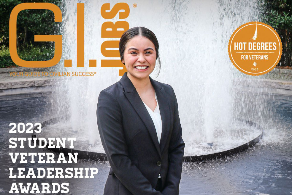 University of Georgia student Gabriela Castillo was featured on the cover of the August issue of G.I. Jobs magazine for receiving the publication’s 2023 Student Veteran Leadership Award. The national honor is handed out annually by the magazine’s editorial team to student veterans who make a positive impact through serving their schools, communities and fellow veterans.