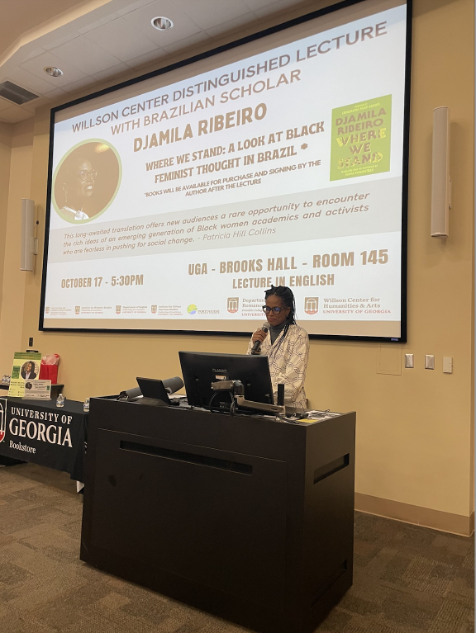 Brazilian philosopher and Journalist Djamila Ribeiro visited the UGA Latin American and Caribbean Studies Institute (LACSI) in October to deliver a lecture, “Where We Stand: A Look at Black Feminist Thought in Brazil,” and speak with Portuguese Flagship students and faculty.
