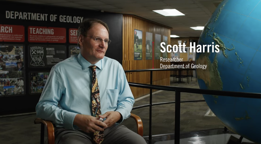 Image: Video still photo of Scott Harris interview in the department of geology.